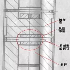 閥桿與閥桿套的定位圓柱銷材質(zhì)應為C422,即2Cr12NiMo1W1V,而對斷裂的銷子(圖6)檢驗發(fā)現(xiàn),其實際材質(zhì)為45鋼,材質(zhì)與設計不符,造成圓柱銷強度不夠,易發(fā)生損壞。